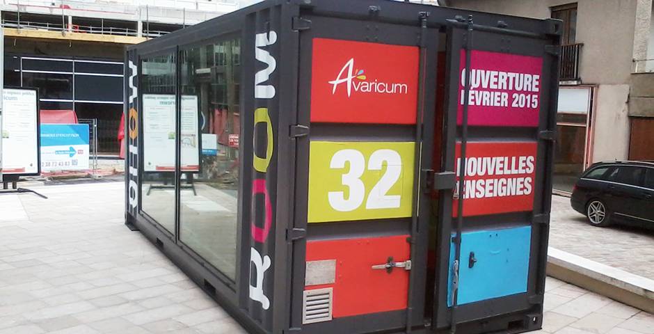 Seja para montar um stand temporário no coração de um centro comercial ou na rua, escolher um contentor marítimo convertido em escritório de vendas é uma solução moderna e atraente. O design do contentor, que faz lembrar um escritório tradicional, apresenta grandes aberturas laterais envidraçadas. Os pavimentos e as paredes estão decorados num estilo decididamente contemporâneo, em harmonia com os produtos vendidos. As paredes exteriores do contentor podem ser personalizadas com autocolantes nas cores da sua marca e sinalética.